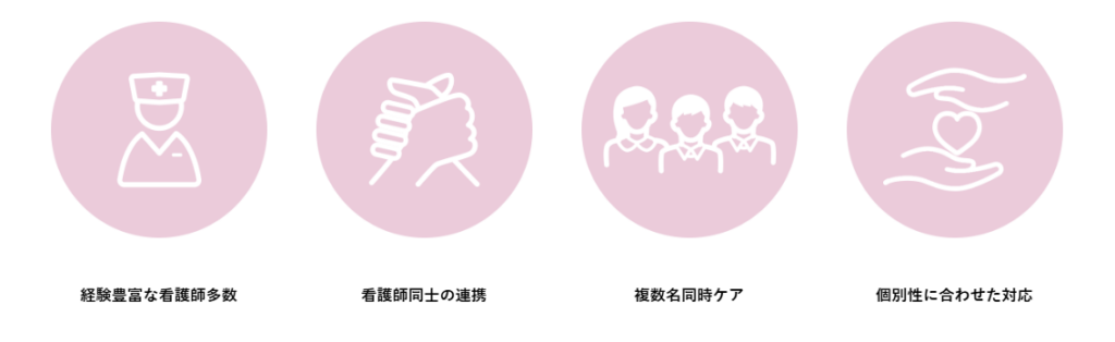 さらに、登録看護師は2,000名以上、常時実働している看護師は約70名に上り、規模の大きさを活かしたサービス提供を実現しています。これにより、適材適所のサポートが可能となり各家庭のニーズに合わせた看護師の派遣ができます。